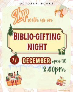 October Books, Portswood – for your books and gifts. Support this independent bookshop: Biblio Gifting Night – on 11 December open 10 am until 8pm!