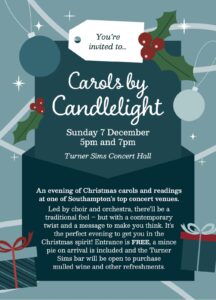 ‘Carols by Candlelight’ this Sunday 7 December from 5pm to 7pm at the Turner Sims Concert Hall