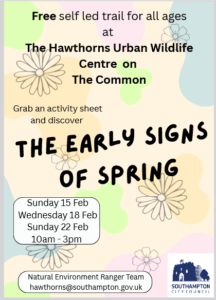 ‘Early Signs of Spring’ trail at The Hawthorns on Southampton Common: 10am-3pm on15, 18 and 22 February 2026