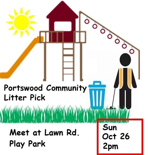 The next litter pick around Portswood Park is on Sunday 26th October from 2pm to 3pm, meeting by the play park on Lawn Road. Pickers, hoops and bags will be provided. Please bring sturdy gloves and take care if you pick things up with your hands.