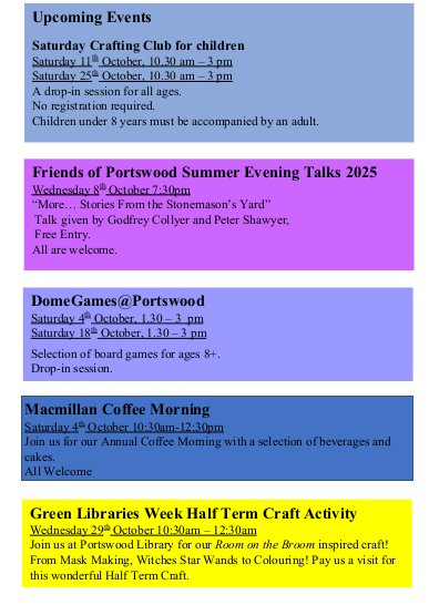News » Lots of activites plus events in this month’s Portswood Library Newsletter (October 2025)!