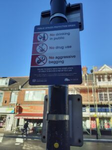 The new Order was approved by SCC’s Cabinet in late November 2025 and, now that the signs have been installed along Portswood High Street, the PSPO is now live. See example of a sign below. Please report anyone you see violating the Order to the police or Community Safety. See details here on how to report and which authority to use: Reporting anti-social behaviour in Portswood