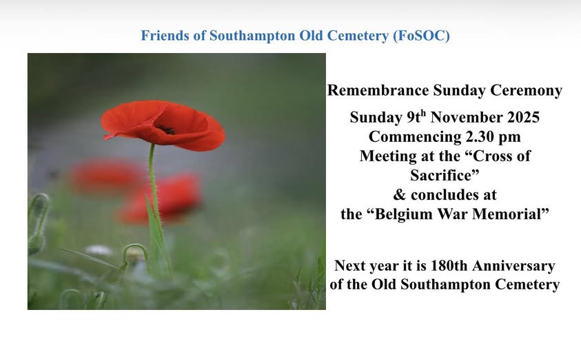 Remembrance Sunday Ceremony at Southampton Old Cemetery – Sunday 9th November at 2.30pm