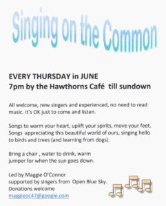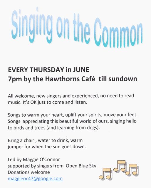 Singing on the Common: every Thursday in June, 7pm by the Hawthorns Café on The Common till sundown!