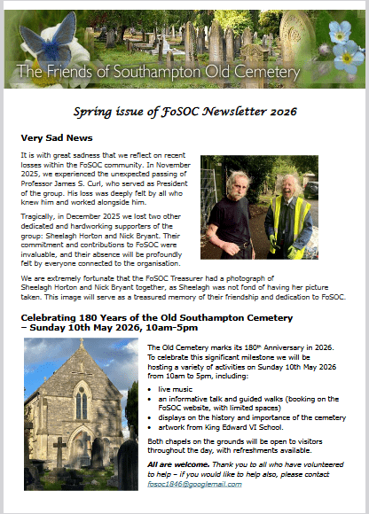 Here is the Friends of Southampton Old Cemetery Spring Newsletter 2026!