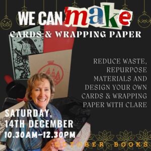 The latest in the ‘We Can Make…..Cards and Wrapping Paper’ is tomorrow Saturday 14th December at 10.30am-12.30pm, at October Books!