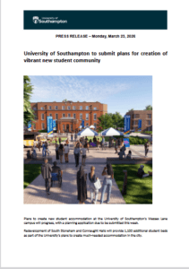 News » University of Southampton official Press Release (Monday 23 March 2026 – ‘University of Southampton to submit plans for creation of vibrant new student community’