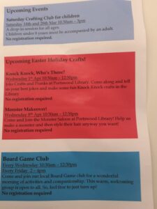 Upcoming holiday Easter crafts at Portswood Library. Both are on Wednesdays – on the 1st and also the 8th April from 10.30am to 12.30pm – see below!