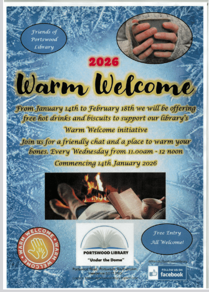 News » ‘Warm Welcome’ at Portswood Library – from January 14th to February 18th, every Wednesday 11am to 12noon – at Portswood Library